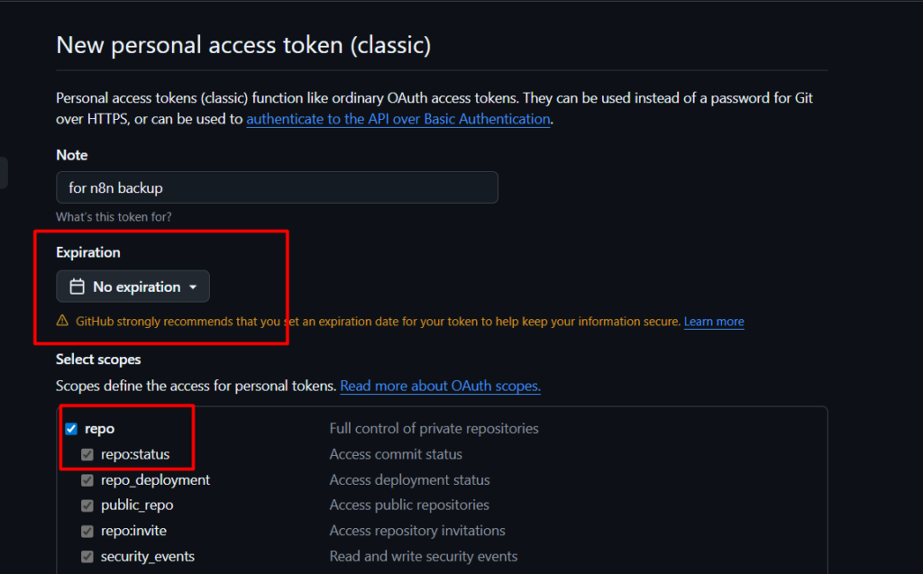 reposcope. Copy the token immediately – You won’t see it again. same goes for n8n as well.
