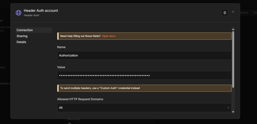 - Authentication: same Header Auth Credentials as Step 5, no change.